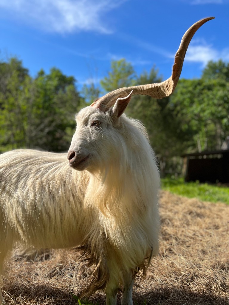 Cyril is registered with the Cashmere Goat Association and was evaluated at a low micron with excellent style during the 2019 CGA show in Tunbridge.